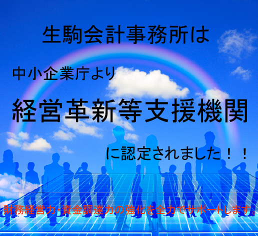 生駒会計事務所は、平成26年11月13日付けで中小企業庁より「経営革新等支援機関」の