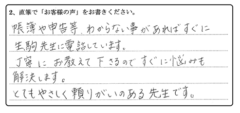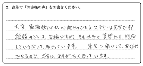 税務のことは、勿論ですが、それ以外の質問にも、対応していただいて、助かっています。