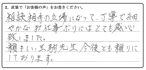 相談相手の立場になって、丁寧で細やかなお仕事ぶりにはとても感心致しました。